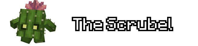 Desert-dwelling thieves disguised as cacti that guard treasure piles. They attack intruders and can pick up and use items found. Players can tame Scrubels with water bottles to have them defend against hostile mobs.