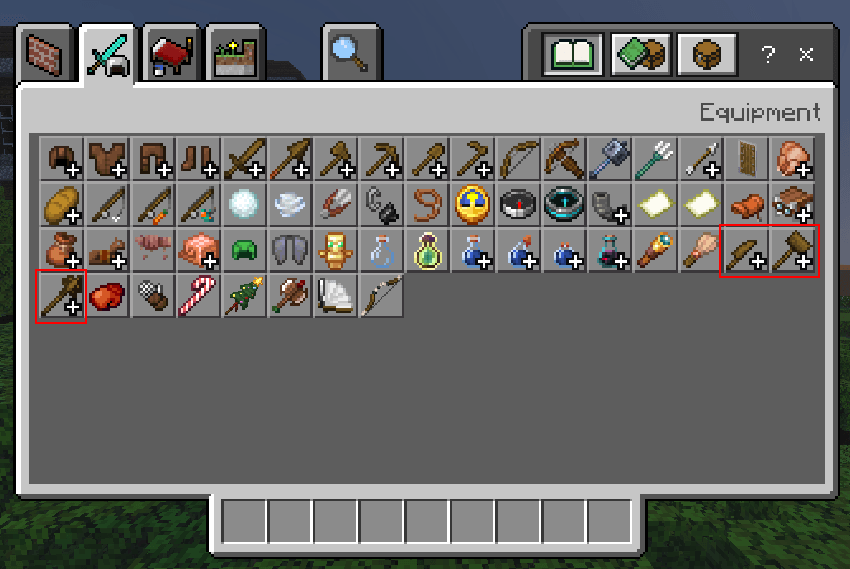 - Organized weapon categories in the creative inventory for easy browsing.