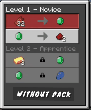 Villagers Trade Unlocker allows you to instantly access and trade all villager offers across every profession and level without the need to level them up. This resource pack provides a seamless way to view and use all trades immediately, eliminating the usual grind and waiting time. It functions safely in multiplayer environments, offering a streamlined trading experience.